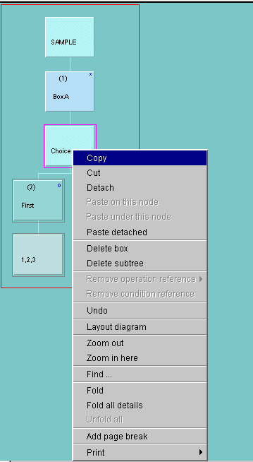 - On another box on the tree (so that the top box of the pasted subtree replaces the one you paste onto)